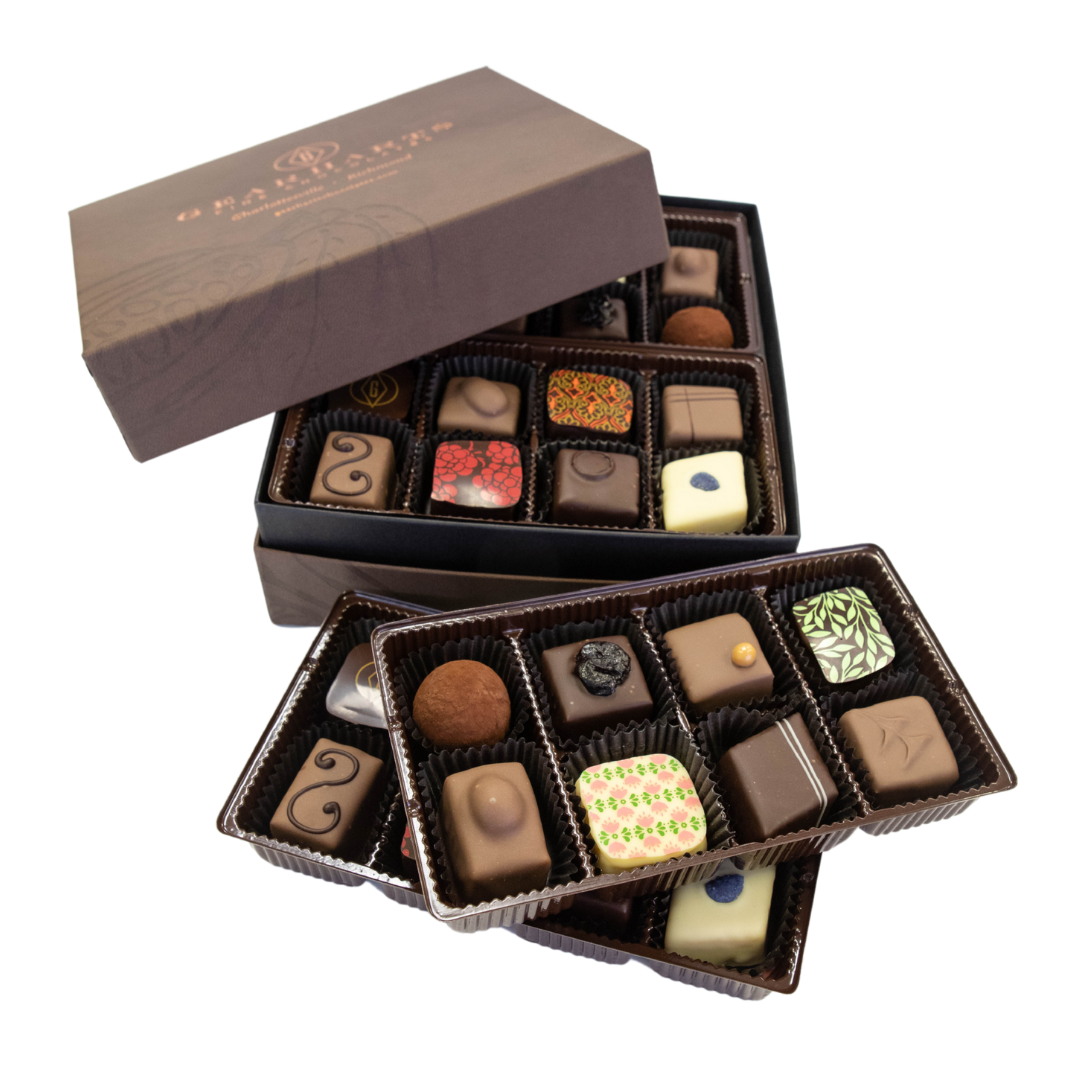 A perfect gift for springtime celebrations! This assortment features two pieces each of our handcrafted signature line chocolates.